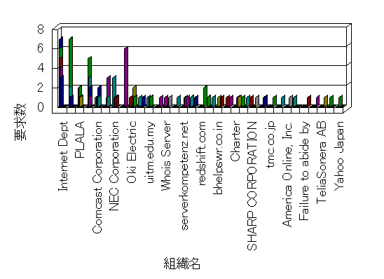 組織ユーザーにインターネット接続を提供する、商用または非営利団体、学術・行政機関などの、インターネット ドメイン で識別される団体や組織です。Microsoft Site Server Analysis は同じ組織に登録されたすべてのドメインを 1 つの組織としてグループ化します。ドメインがデータベースで使用できない場合は、1 つのインターネット ドメインが 1 つの組織を識別するのに使用されます。