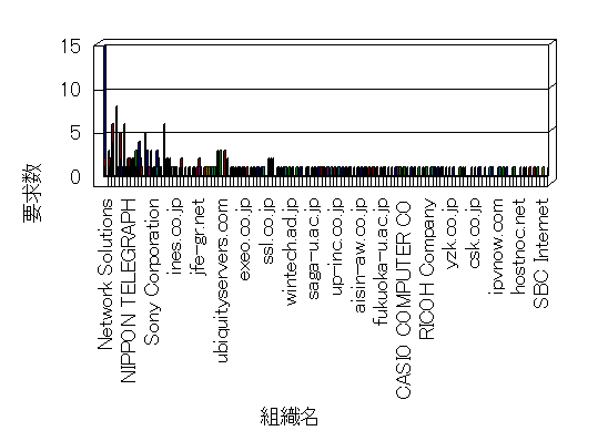 組織ユーザーにインターネット接続を提供する、商用または非営利団体、学術・行政機関などの、インターネット ドメイン で識別される団体や組織です。Microsoft Site Server Analysis は同じ組織に登録されたすべてのドメインを 1 つの組織としてグループ化します。ドメインがデータベースで使用できない場合は、1 つのインターネット ドメインが 1 つの組織を識別するのに使用されます。