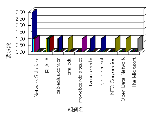 組織ユーザーにインターネット接続を提供する、商用または非営利団体、学術・行政機関などの、インターネット ドメイン で識別される団体や組織です。Microsoft Site Server Analysis は同じ組織に登録されたすべてのドメインを 1 つの組織としてグループ化します。ドメインがデータベースで使用できない場合は、1 つのインターネット ドメインが 1 つの組織を識別するのに使用されます。