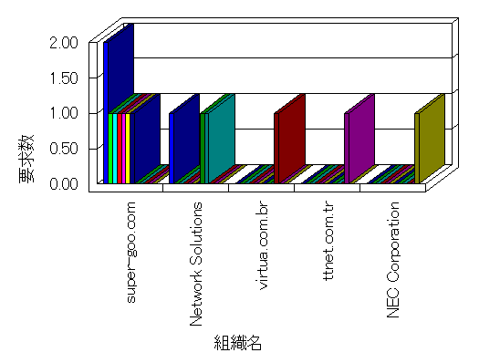組織ユーザーにインターネット接続を提供する、商用または非営利団体、学術・行政機関などの、インターネット ドメイン で識別される団体や組織です。Microsoft Site Server Analysis は同じ組織に登録されたすべてのドメインを 1 つの組織としてグループ化します。ドメインがデータベースで使用できない場合は、1 つのインターネット ドメインが 1 つの組織を識別するのに使用されます。