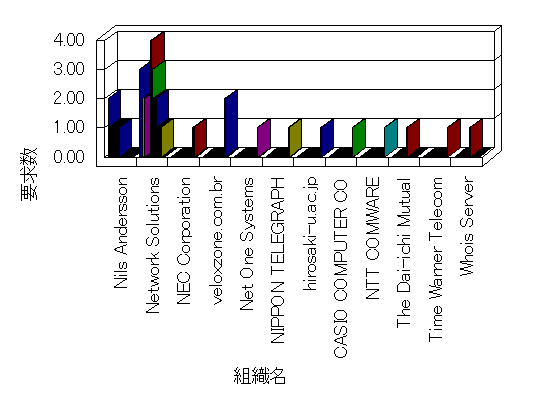 組織ユーザーにインターネット接続を提供する、商用または非営利団体、学術・行政機関などの、インターネット ドメイン で識別される団体や組織です。Microsoft Site Server Analysis は同じ組織に登録されたすべてのドメインを 1 つの組織としてグループ化します。ドメインがデータベースで使用できない場合は、1 つのインターネット ドメインが 1 つの組織を識別するのに使用されます。
