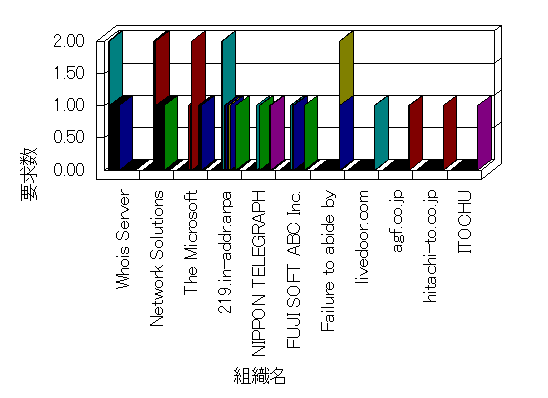 組織ユーザーにインターネット接続を提供する、商用または非営利団体、学術・行政機関などの、インターネット ドメイン で識別される団体や組織です。Microsoft Site Server Analysis は同じ組織に登録されたすべてのドメインを 1 つの組織としてグループ化します。ドメインがデータベースで使用できない場合は、1 つのインターネット ドメインが 1 つの組織を識別するのに使用されます。
