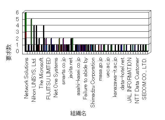 組織ユーザーにインターネット接続を提供する、商用または非営利団体、学術・行政機関などの、インターネット ドメイン で識別される団体や組織です。Microsoft Site Server Analysis は同じ組織に登録されたすべてのドメインを 1 つの組織としてグループ化します。ドメインがデータベースで使用できない場合は、1 つのインターネット ドメインが 1 つの組織を識別するのに使用されます。